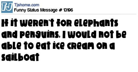 X is if it weren't for elephants and penguins, I would not be able to eat ice cream on a sailboat