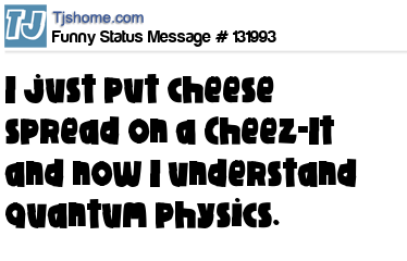 X I just put cheese spread on a Cheez-It and now I understand quantum physics.