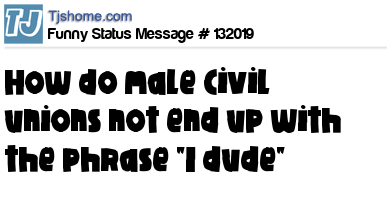 - # 84834 How do male civil unions not end with the phrase "I dude"?