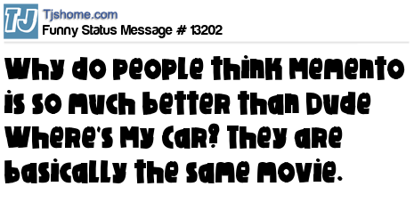 X is Why do people think Memento is so much better than Dude Where's My Car? They are basically the same movie.