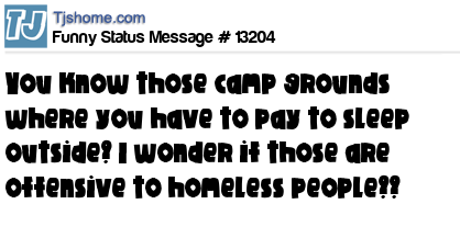 X says You know those camp grounds where you have to pay to sleep outside? I wonder if those are offensive to homeless people??