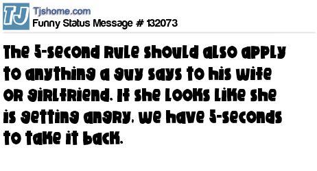 X The 5-second rule should also apply to anything a guy says to his wife or girlfriend. If she looks like she is getting angry, we have 5-seconds to take it back.