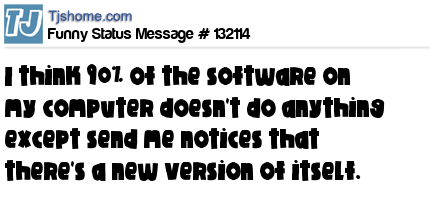 - # 148672 I think 90% of the software on my computer doesn’t do anything except send me notices that there’s a new version of itself.