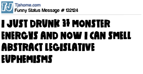 X says I JUST DRUNK 37 MONSTER ENERGYS AND NOW I CAN SMELL ABSTRACT LEGISLATIVE EUPHEMISMS