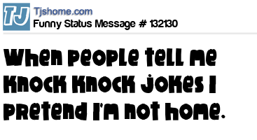 - # 188912 Whenever someone tells me a Knock-Knock joke, I sit there quietly and pretend I'm not at home until they leave.