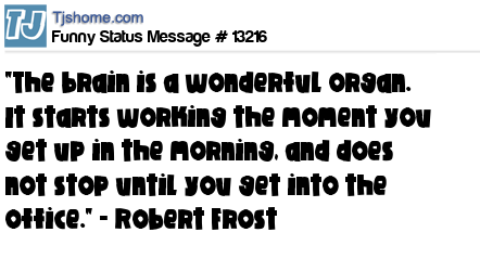 X "The brain is a wonderful organ. It starts working the moment you get up in the morning, and does not stop until you get into the office." - Robert Frost