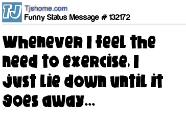 X says Whenever I feel the need to exercise, I just lie down until it goes away...