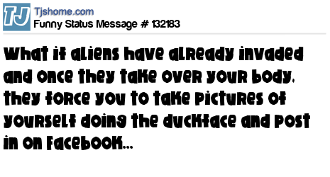 X what if aliens have already invaded and once they take over your body, they force you to take pictures of yourself doing the duckface and post in on Facebook...