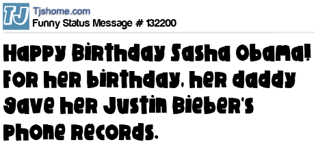 X says Happy Birthday Sasha Obama! For her birthday, her daddy gave her Justin Bieber's phone records.