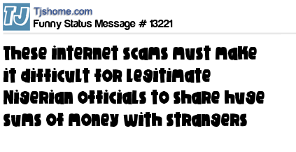 - # 32211 These internet scams must make it difficult for legitimate Nigerian royalty to share huge sums of money with strangers...