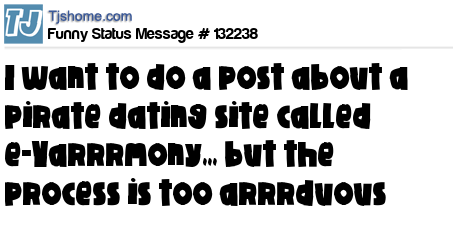 X I want to do a post about a pirate dating site called e-Yarrrmony,,, but the process is too arrrduous