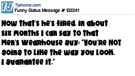 X says Now that's he's fired, in about six months I can say to that Men's Wearhouse guy: "You're NOT going to like the way you look. I guarantee it."