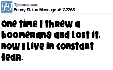 X One time I threw a boomerang and lost it, now I live in constant fear.