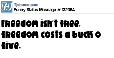 - # 132352 Freedom is not free. It costs a lot of freedom.