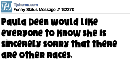 X Paula Deen would like everyone to know she is sincerely sorry that there are other races.