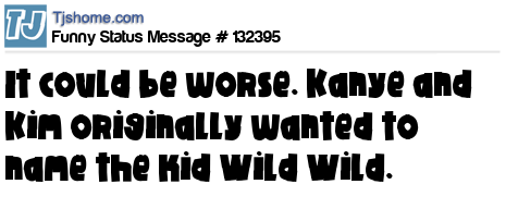 X says It could be worse. Kanye and Kim originally wanted to name the kid Wild Wild.