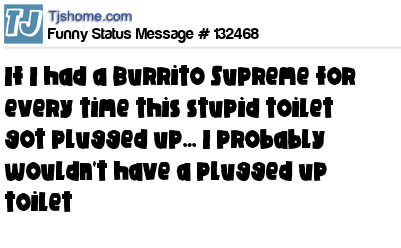 X If I had a Burrito Supreme for every time this stupid toilet got plugged up… I probably wouldn't have a plugged up toilet ツ