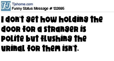 X says I don't get how holding the door for a stranger is polite but flushing the urinal for them isn't.