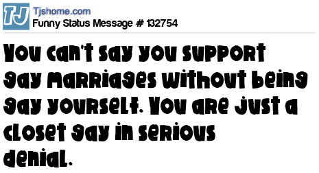 X says You can't say you support gay marriages without being gay yourself. You are just a closet gay in serious denial.