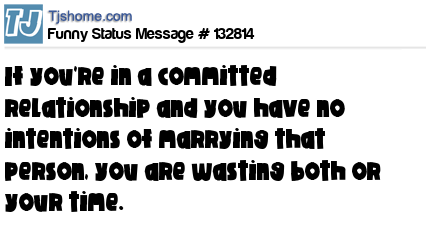 - # 132831 If you're in a committed relationship and you have no intentions of marrying that person, then you're wasting both of our time.
