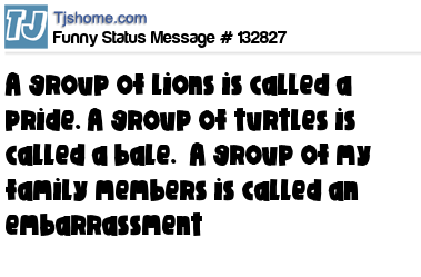 X A group of lions is called a pride. A group of turtles is called a bale. A group of my family members is called an embarrassment