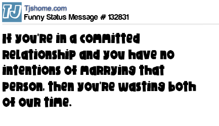 - # 132814 If you're in a committed relationship and you have no intentions of marrying that person, you are wasting both or your time.