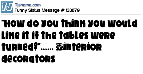 X "How do you think you would like it if the tables were turned?"...... ~interior decorators