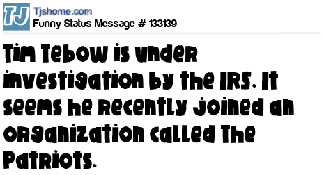 X says Tim Tebow is under investigation by the IRS. It seems he recently joined an organization called The Patriots.