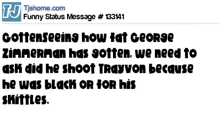X gottenSeeing how fat George Zimmerman has gotten, we need to ask did he shoot Trayvon because he was black or for his skittles.