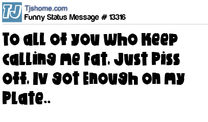 X is To all of you who keep calling me Fat, Just Piss off, Iv got Enough on my Plate..