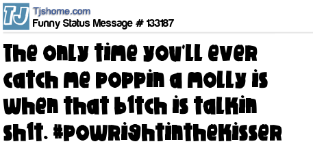 X says The only time you'll ever catch me poppin a molly is when that b1tch is talkin sh1t. #powrightinthekisser