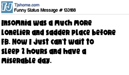 X says Insomnia was a much more lonelier and sadder place before FB. Now I just can't wait to sleep 2 hours and have a miserable day.