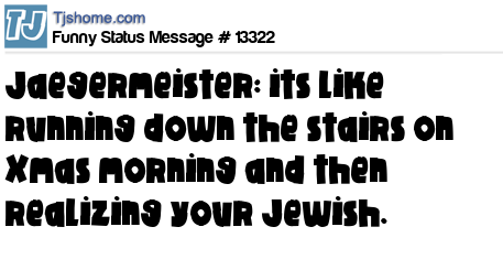 X says jaegermeister: its like running down the stairs on Xmas morning and then realizing your Jewish.