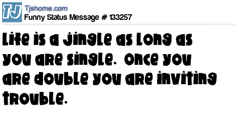 X says Life is a jingle as long as you are single. Once you are double you are inviting trouble.