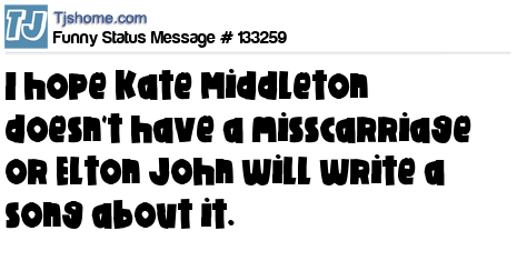 X says I hope Kate Middleton doesn't have a misscarriage or Elton John will write a song about it.