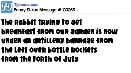 X says The rabbit trying to get breakfast from our garden is now under an artillery barrage from the left over bottle rockets from the Forth of July