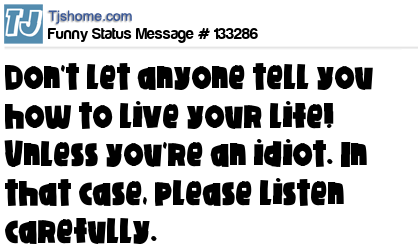 X says Don't let anyone tell you how to live your life! Unless you're an idiot. In that case, please listen carefully.