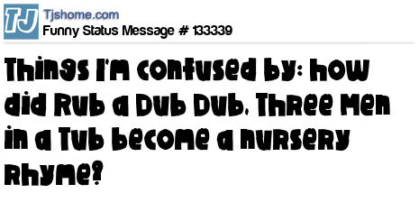 - # 126783 Somebody tell me how "Rub a dub dub, 3 men in a tub" became a nursery rhyme?