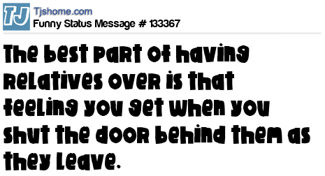 X says The best part of having relatives over is that feeling you get when you shut the door behind them as they leave.