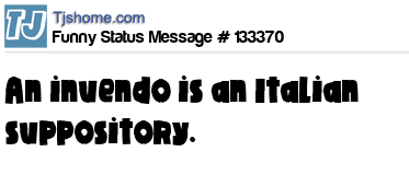 - # 135103 INNUENDO [in-yoo-en-doh] noun: An Italian Suppository