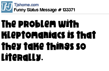 - # 204352 It's hard to explain puns to Kleptomaniacs because they take things literally