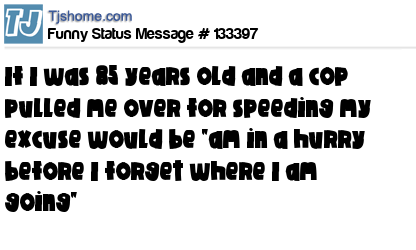 X if I was 85 years old and a cop pulled me over for speeding my excuse would be "am in a hurry before I forget where I am going"