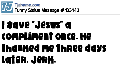 X says I gave "Jesus" a compliment once. He thanked me three days later. Jerk.