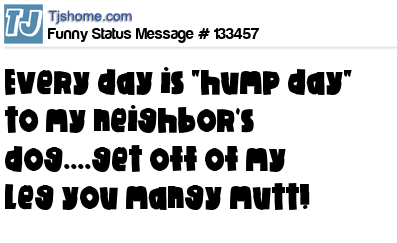 X says Every day is "hump day" to my neighbor's dog....get off of my leg you mangy mutt!