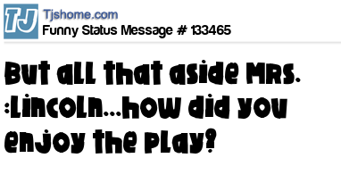 X says But all that aside Mrs. :Lincoln...how did you enjoy the play?