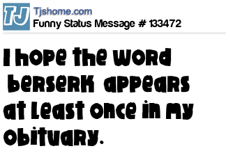 X I hope the word ‘berserk’ appears at least once in my obituary.