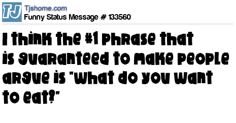X I think the #1 phrase that is guaranteed to make people argue is "what do you want to eat?"