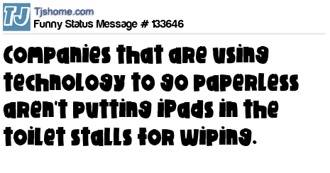 X says Companies that are using technology to go paperless aren't putting iPads in the toilet stalls for wiping.