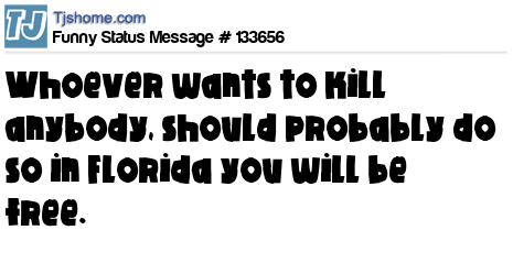 - # 145546 Great another "stand your ground" case ut of Florida....... We all know if you wanna kill someone go to Florida and do it!