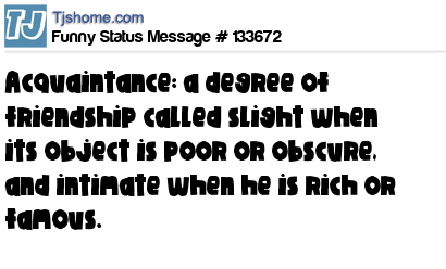 X Acquaintance: a degree of friendship called slight when its object is poor or obscure, and intimate when he is rich or famous.